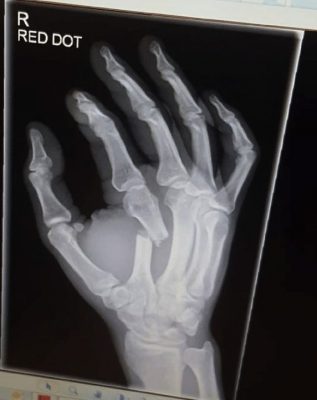 “Well my friends… I am proud of my performance and so should my opponent Peter. He truly rose to the occasion and put on a fantastic performance. I assume you all want to see the broken hand X rays lol… Well… here you go! It is hard to believe I fought a whole nother round with this thing busted like this still punching and grabbing with it lol. Praise God for adrenaline!”