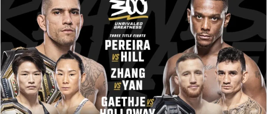 This weekend, the UFC is set to host its most star-studded event to date, with UFC 300 taking place in Las Vegas on April 13th. Featuring three title fights and a roster filled with the sport’s biggest names, the anticipation is sky-high. The main event sees newly crowned light heavyweight champion Alex Pereira defending his title against former champion Jamahal Hill, while the co-main event spotlights the strawweight division as champion Zhang Weili faces Yan Xiaonan. However, the bout that has fans buzzing is the BMF title match between Justin Gaethje and former featherweight champion Max Holloway, promising an explosive lightweight clash.