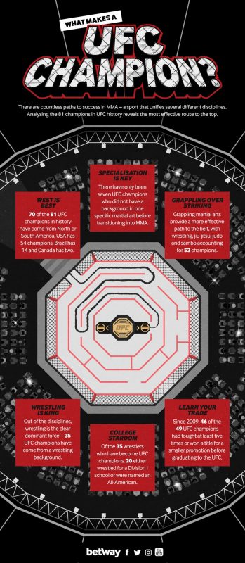 - Wrestling at such a level at a young age has, therefore, helped more than a quarter of UFC champions reach the pinnacle of the sport.